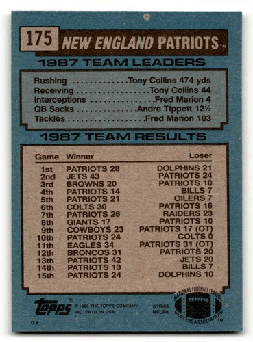 1988 Topps #175 Patriots Team Leaders - Irving Fryar TL New England ID:62509