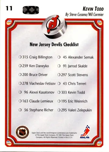 1992-93 Upper Deck #11 Kevin Todd NM Near Mint NJ Devils TC ID:46068