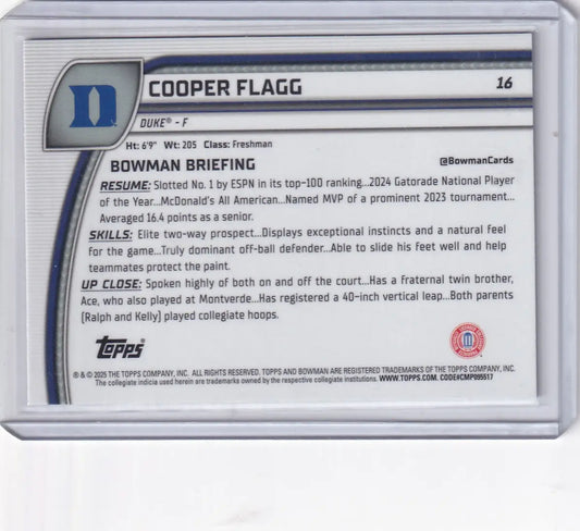 2025 BOWMAN CHROME #16 COOPER FLAGG PURPLE LAVA- DUKE BLUE DEVILS