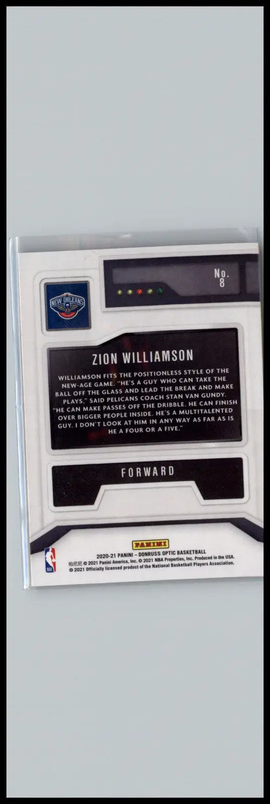 2020-21 Donruss Optic #8 Zion Williamson T-Minus 3...2...1 New Orleans Pelicans