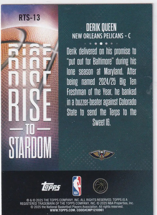 2025 TOPPS #RTS-13 DERIK QUEEN RISE TO STARDOM- NEW ORLEANS PELICANS