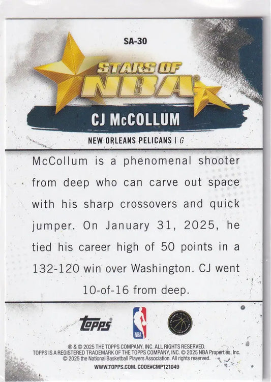2025 TOPPS #SA-30 CJ MCCOLLUM STARS OF NBA- NEW ORLEANS PELICANS