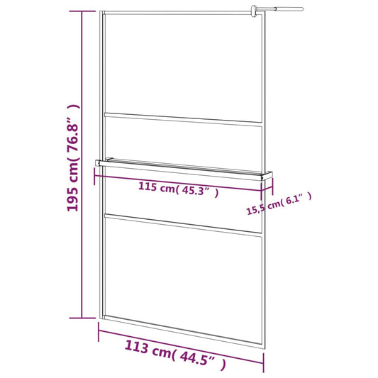vidaXL Walk-in Shower Wall with Shelf Black 45.3"x76.8" ESG Glass&Aluminum