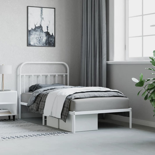 vidaXL Metal Bed Frame with Headboard White 39.4"x74.8" Twin