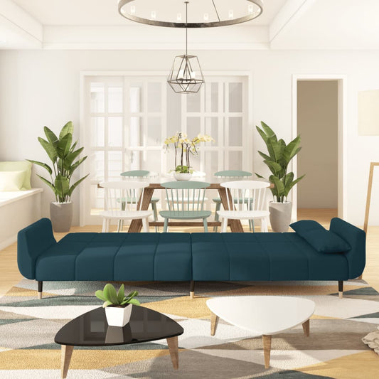vidaXL 2-Seater Sofa Bed with Two Pillows Blue Velvet
