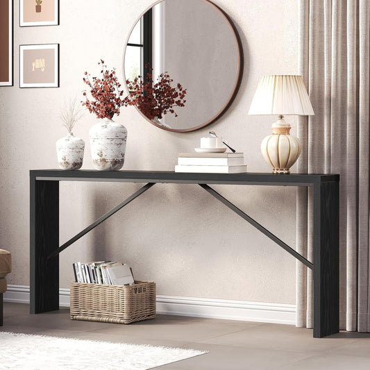 Console Table, 70.9" Long Sofa Table behind Couch, Narrow Entryway Table, Farmhouse Dining Table with Angled Metal Frame, Industrial Console Table for Entryway, Black CTHB18801