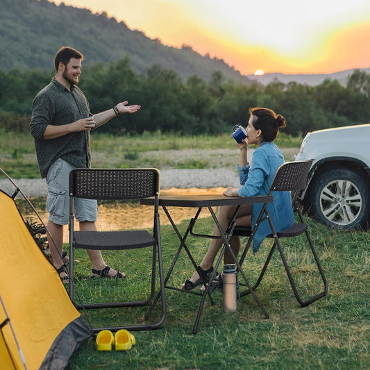 3 Pieces Folding Patio Bistro Set Bistro Table and Chairs Set for Outside, All Weather Small Patio Set for Balcony Porch Backyard, Black