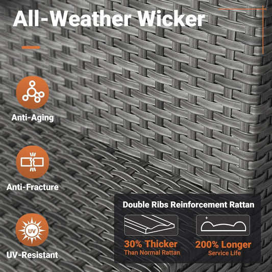 11 Piece Outdoor Patio Furniture Set with Fire Pit Table,Conversation Sectional Wicker Couch with Swivel Chairs,Modern outside Sofa for Balcony Backyard (Dark Grey)