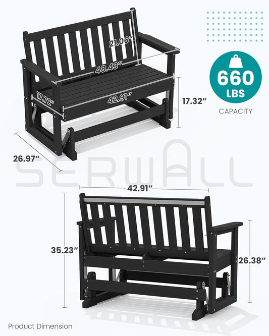Two Person Outdoor Glider Bench Weather Resistant Comfortable