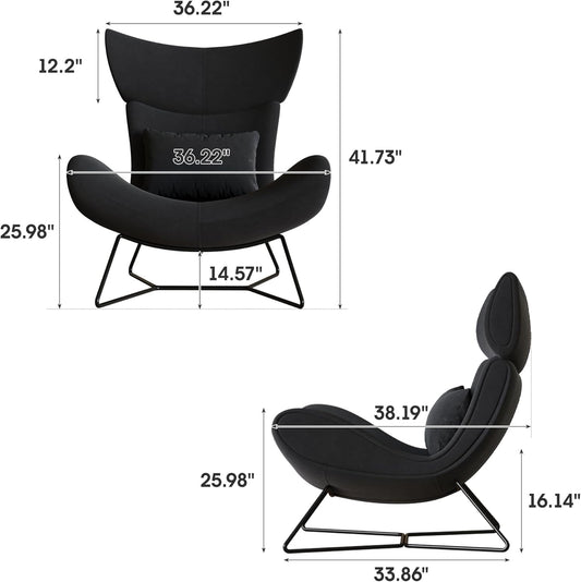 Beige Velvet Wingback Accent Chair Mid Century Modern
