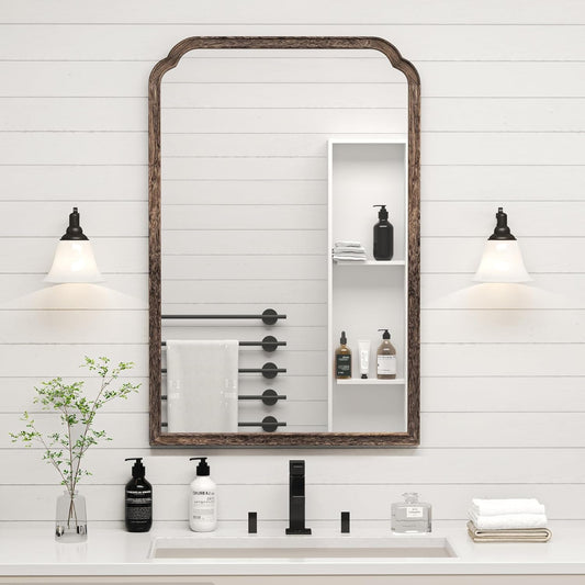 24"X36" Solid Wood Bathroom Mirror Rounded Corner Tempered Glass for Wall Mounted, Rustic Wood Frame Wall Mirror Decorative for Living Room Bedroom Vanity Mirror Entryway Mirror, Rustic Brown