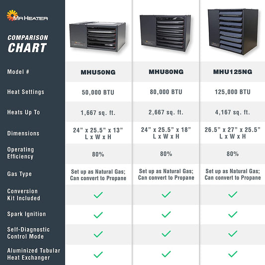 F260560 Big Maxx MHU80NG Natural Gas Unit Heater, 80,000 BTU, Black