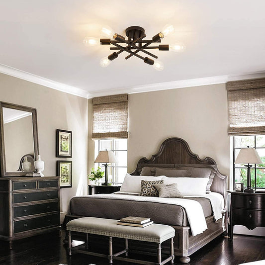 Semi Flush Mount Modern Ceiling Light Fixture, 6 Lights Black Vintage Matte Sputnik Chandelier Ceiling Lamp with E26 Bulb Base for Farmhouse Dining Room Living Room Bedroom Study Kitchen