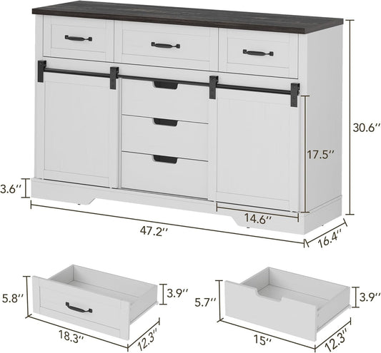 White Farmhouse Buffet Cabinet 47.2inches With Drawers