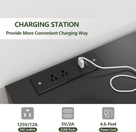 White 6-Drawer Dresser, LED, Power Outlet, Modern
