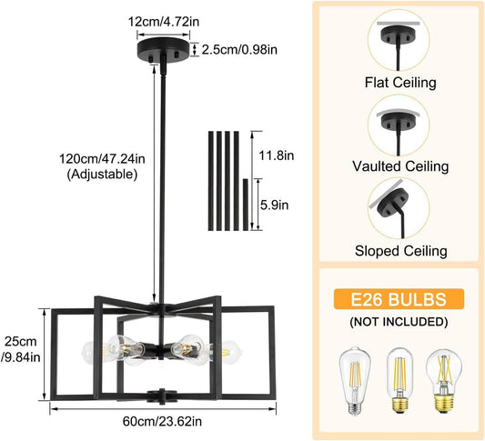 Black 23 Inch Chandelier 6 Light Farmhouse Dining Room