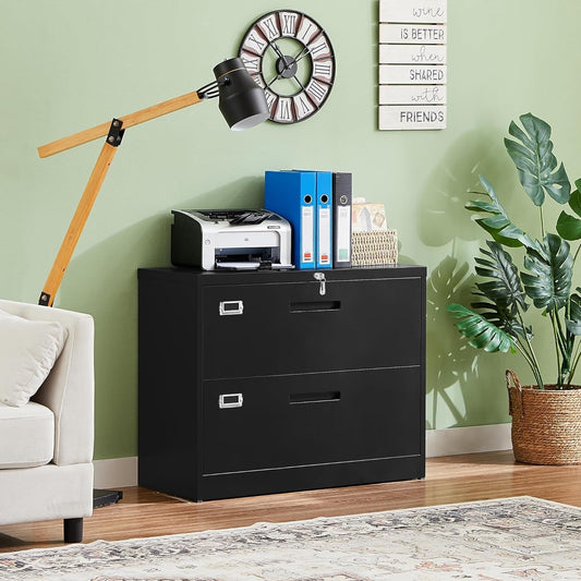 Metal Lateral File Cabinets with Lock,2 Drawer Steel Wide Filing Organization Storage Cabinets,Home Office Furniture for Hanging Files Letter/Legal/F4/A4 Size (Blcak-2 Drawer)