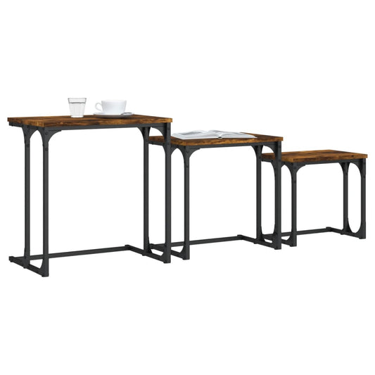 vidaXL Nesting Coffee Tables 3 pcs Smoked Oak Engineered Wood