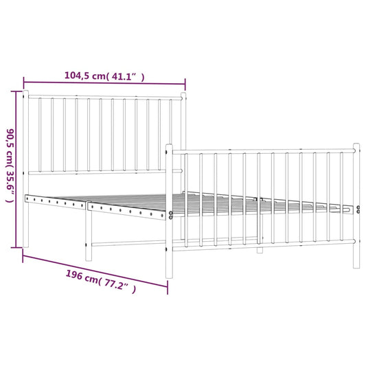 vidaXL Metal Bed Frame with Headboard and Footboard White 39.4"x74.8" Twin
