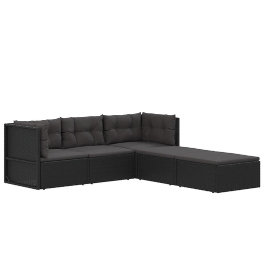 vidaXL 5 Piece Patio Lounge Set with Cushions Black Poly Rattan