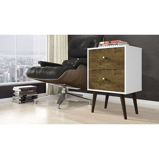 Modern Mid-Century Side Table Nighstand in White and Wood Finish