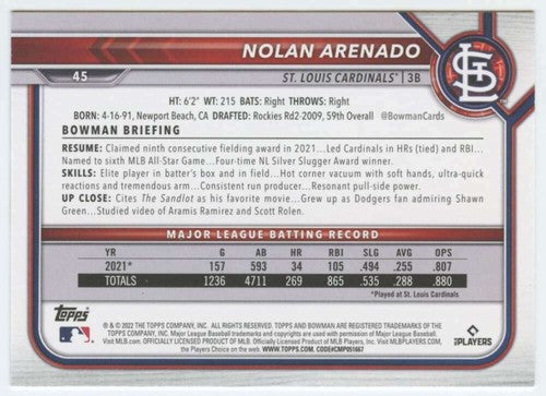 2022 Bowman #45 Nolan Arenado NM-MT Cardinals ID:42023