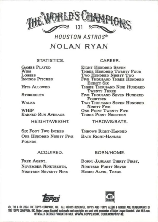 2024 Allen & Ginter #131 Nolan Ryan NM-MT Houston Astros Baseball Card