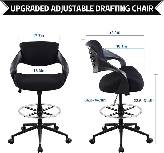 Ergonomic Drafting Chair,Standing Computer Desk Chair,Foot Ring,Lumbar Support,Swivel Task Chair-Black