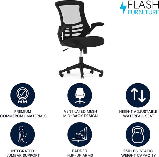 Kelista Mid-Back Swivel Office Chair with Adjustable Seat Height, Ergonomic Mesh Desk Chair with Flip-Up Armrests, Black