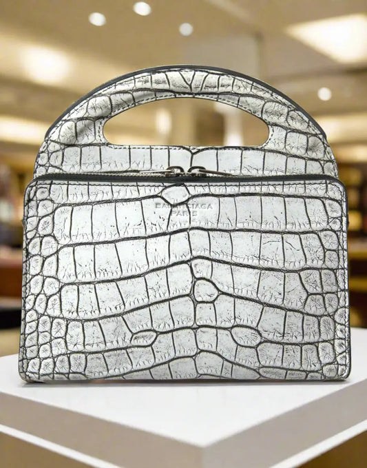 BALENCIAGA Metallic Silver Alligator Leather Mini Bag