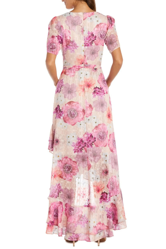 Last One! Size 8 - Nightway Chiffon Floral Metallic Flutter Maxi Day Dress
