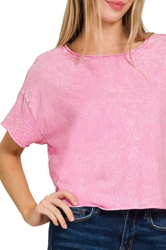 Zenana Washed Crew Neck Short Sleeve Crop Box Tee