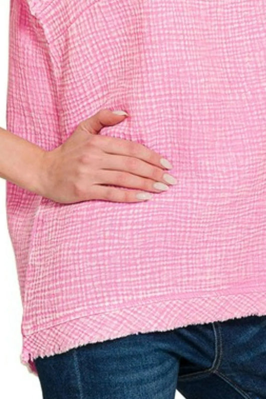 Zenana Double Gauze Raw Edge Acid Washed Tank