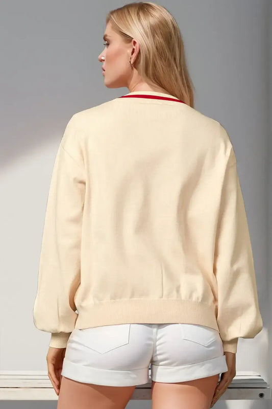 Double Take Full Size Nutcracker Sequin Bow Decor Cardigan