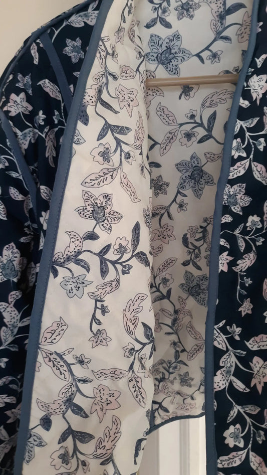 LAST ONE! ONLY SM REMAINING! Dark Blue -OR- Baby Blue, Miss Sparkling Apparel REVERSIBLE Quilted Bed Jacket Women's Gifts, Mom, Grandmother