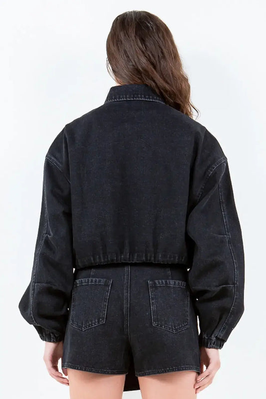 American Bazi Off Shoulder Lace Up Denim Jacket