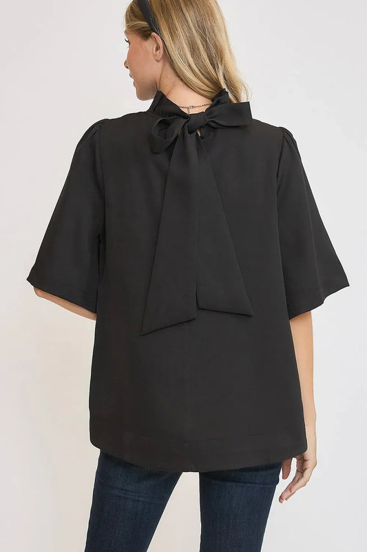 Umgee Bow Tie Back Mock Neck Half Sleeve Blouse