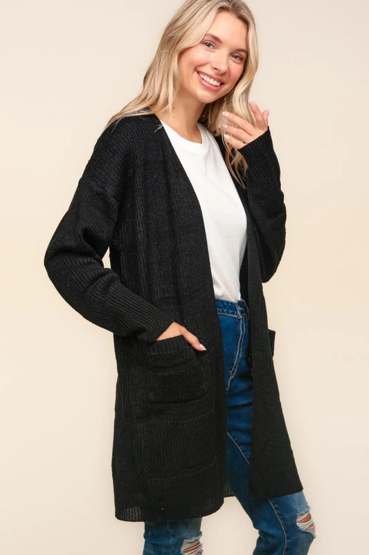 Haptics Stripe Textured Open Front Cardigan with Pockets