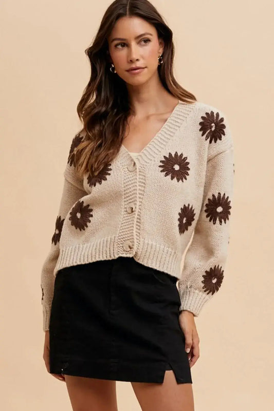 Davi & Dani Floral Applique Open Front Dropped Shoulder Cardigan