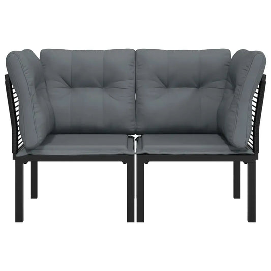 vidaXL Patio Corner Chairs with Cushions 2 pcs Black and Gray Poly Rattan