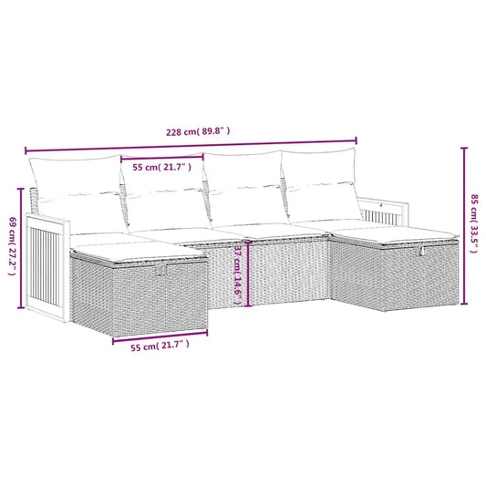 vidaXL 6 Piece Patio Lounge Set with Cushions Poly Rattan Gray
