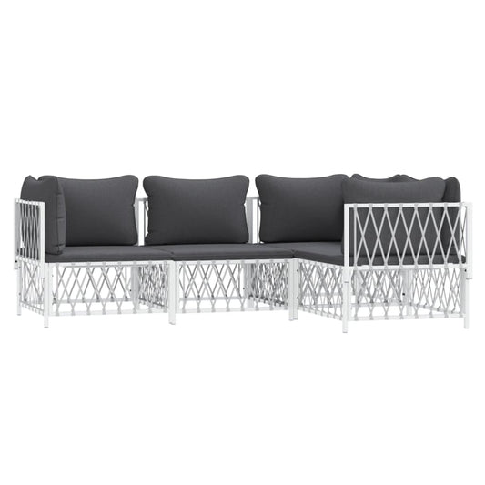 vidaXL 4 Piece Patio Lounge Set with Cushions White Steel