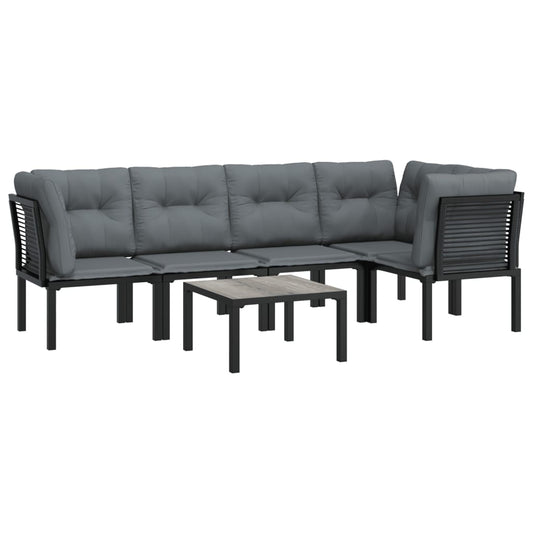 vidaXL 6 Piece Patio Sofa Set with Cushions Black Poly Rattan