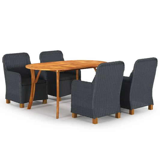 vidaXL 5 Piece Patio Dining Set with Cushions Poly Rattan and Steel