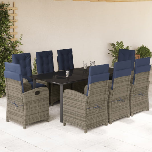 vidaXL 9 Piece Patio Dining Set with Cushions Gray Poly Rattan