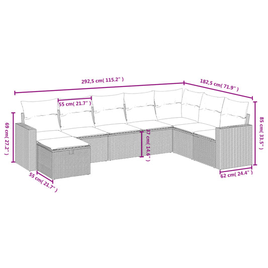 vidaXL 8 Piece Patio Lounge Set with Cushions Poly Rattan Brown
