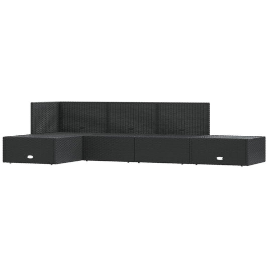 vidaXL 5 Piece Patio Sofa Set with Cushions Black Poly Rattan