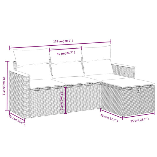 vidaXL 4 Piece Patio Sofa Set with Cushions Black Poly Rattan