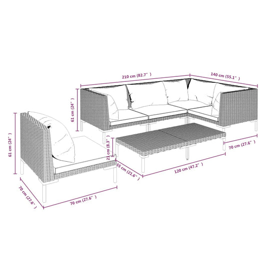 vidaXL 6 Piece Patio Lounge Set with Cushions Poly Rattan Dark Gray