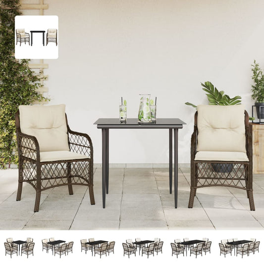 vidaXL 3 Piece Bistro Set with Cushions Brown Poly Rattan
